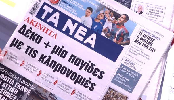 Αρχική ΚΟΙΝΩΝΙΑ Τα πρωτοσέλιδα των εφημερίδων σήμερα ΚΟΙΝΩΝΙΑ Τα πρωτοσέλιδα των εφημερίδων σήμερα Από admin - 11 Αυγούστου 2025 FacebookTwitterPinterestWhatsApp Τι γράφουν οι εφημερίδες σήμερα 11/08/2025. Πηγή ΠΑΡΟΜΟΙΑ ΑΡΘΡΑΠΕΡΙΣΣΟΤΕΡΑ ΑΠΟ ΤΟΝ ΔΗΜΙΟΥΡΓΟ Κακοκαιρία: Νύχτα αγωνίας στην Θεσσαλία εξαιτίας της υπερχείλισης του ποταμού Ενιπέα – Καταστροφές σε όλη τη χώρα Κλιμακώνονται οι αγροτικές κινητοποιήσεις – Νέο μπλόκο στις Μικροθήβες Μαγνησίας Μαλακάσα: Οδηγός χάνει τον έλεγχο του ΙΧ του λόγω κακοκαιρίας και έπεσε σε προστατευτικές μπάρες – Βίντεο σοκ Εκδηλώσεις μνήμης σε όλη τη χώρα για την δολοφονία του Αλέξανδρου Γρηγορόπουλου Τα πρωτοσέλιδα των εφημερίδων σήμερα Νύχτα αποκαλύψεων στο «Φως στο Τούνελ» Ροή ειδήσεων Κακοκαιρία: Νύχτα αγωνίας στην Θεσσαλία εξαιτίας της υπερχείλισης του ποταμού Ενιπέα... 6 Δεκεμβρίου 2025 ΗΠΑ: Η Μελάνια Τραμπ άναψε το «εθνικό» χριστουγεννιάτικο δέντρο 6 Δεκεμβρίου 2025 Κυριάκος Μητσοτάκης στο ΚΥ Μαρκόπουλου: Υλοποιείται το μεγαλύτερο πρόγραμμα αναβάθμισης κτιρίων... 6 Δεκεμβρίου 2025 Κλιμακώνονται οι αγροτικές κινητοποιήσεις – Νέο μπλόκο στις Μικροθήβες Μαγνησίας 6 Δεκεμβρίου 2025 Ντόναλντ Τραμπ: Ενισχύει τις στρατιωτικές δυνάμεις ανοιχτά της Βενεζουέλας 6 Δεκεμβρίου 2025 Κώστας Τσιάρας προς αγρότες: «Κανένα αίτημα για συνάντηση δεν έχει απορριφθεί» 6 Δεκεμβρίου 2025 Μαλακάσα: Οδηγός χάνει τον έλεγχο του ΙΧ του λόγω κακοκαιρίας και... 6 Δεκεμβρίου 2025 Κυριάκος Μητσοτάκης: Είμαστε ανοιχτοί σε διάλογο με τους αγρότες 6 Δεκεμβρίου 2025 Εκδηλώσεις μνήμης σε όλη τη χώρα για την δολοφονία του Αλέξανδρου... 6 Δεκεμβρίου 2025
