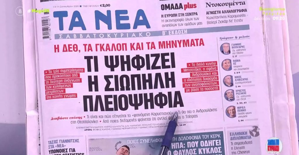 Αρχική ΚΟΙΝΩΝΙΑ Τα πρωτοσέλιδα των εφημερίδων σήμερα ΚΟΙΝΩΝΙΑ Τα πρωτοσέλιδα των εφημερίδων σήμερα Από admin - 13 Σεπτεμβρίου 2025 FacebookTwitterPinterestWhatsApp Τι γράφουν οι εφημερίδες σήμερα 13/09/2025. Πηγή ΠΑΡΟΜΟΙΑ ΑΡΘΡΑΠΕΡΙΣΣΟΤΕΡΑ ΑΠΟ ΤΟΝ ΔΗΜΙΟΥΡΓΟ Νύχτα αποκαλύψεων στο «Φως στο Τούνελ» Σαλαμίνα: Όταν η νύφη άλλαζε νύχτα τις κάμερες στο σπίτι του φονικού Ρόδος: Τον σκότωσαν και οι δύο & σκηνοθέτησαν ληστεία – Τι αναφέρει το βούλευμα Ρόδος: «Τον απειλούν & φοβάται για τη ζωή του» – Σοκάρει η μαρτυρία για το παρασκήνιο της «ομολογίας» Ρόδος: «Μίλησα & δέχομαι απειλές» – Όσα αποκάλυψε η μητέρα του ανιψιού που κατηγορείται για συνεργία στη δολοφονία Καρυώτη Δολοφονία Καρυώτη: «Μου δώσανε φράγκα για να ομολογήσω» – Ντοκουμέντο «βόμβα» μέσα από τις φυλακές Ροή ειδήσεων Νύχτα αποκαλύψεων στο «Φως στο Τούνελ» 6 Δεκεμβρίου 2025 Σαλαμίνα: Όταν η νύφη άλλαζε νύχτα τις κάμερες στο σπίτι του... 6 Δεκεμβρίου 2025 Συνάντηση εργασίας για την πρόληψη και τη διαχείριση της παιδικής παχυσαρκίας 6 Δεκεμβρίου 2025 Ρόδος: Τον σκότωσαν και οι δύο & σκηνοθέτησαν ληστεία – Τι... 6 Δεκεμβρίου 2025 Ρόδος: «Τον απειλούν & φοβάται για τη ζωή του» – Σοκάρει... 6 Δεκεμβρίου 2025 Η Περιφέρεια Δυτικής Ελλάδας ανοίγει το δημόσιο διάλογο για το νέο... 6 Δεκεμβρίου 2025 Ρόδος: «Μίλησα & δέχομαι απειλές» – Όσα αποκάλυψε η μητέρα του... 6 Δεκεμβρίου 2025 Παύλος Κοντογιαννίδης για Αλέξη Τσίπρα: Γνωστός φέρελπις αποτυχημένος του παρελθόντος οραματιστής... 6 Δεκεμβρίου 2025 Δολοφονία Καρυώτη: «Μου δώσανε φράγκα για να ομολογήσω» – Ντοκουμέντο «βόμβα»... 6 Δεκεμβρίου 2025