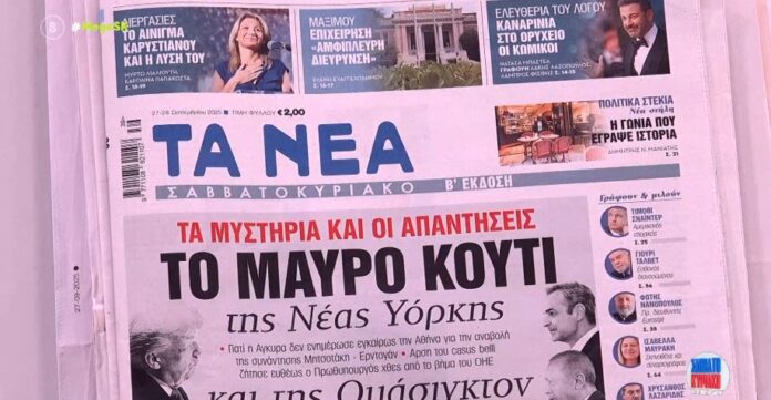 Αρχική ΚΟΙΝΩΝΙΑ Τα πρωτοσέλιδα των εφημερίδων σήμερα ΚΟΙΝΩΝΙΑ Τα πρωτοσέλιδα των εφημερίδων σήμερα Από admin - 27 Σεπτεμβρίου 2025 FacebookTwitterPinterestWhatsApp Τι γράφουν οι εφημερίδες σήμερα 27/09/2025. Πηγή ΠΑΡΟΜΟΙΑ ΑΡΘΡΑΠΕΡΙΣΣΟΤΕΡΑ ΑΠΟ ΤΟΝ ΔΗΜΙΟΥΡΓΟ Σαλαμίνα: Άγνωστες μαρτυρίες για τη δολοφονία της 75χρονης από τη νύφη της Καιρός: Στο έλεος της κακοκαιρίας «Byron» ολόκληρη η χώρα – Πλημμύρες & προβλήματα Καιρός: «Πνίγηκε» η δυτική Αττική από την κακοκαιρία «Byron» – Χείμαρροι οι δρόμοι, πλημμύρισαν σπίτια Κακοκαιρία Byron: «Σιντριβάνια» και πλημμύρες στην Καλλιθέα – «Βενετία» το Μοναστηράκι Καιρός: Πλημμύρες & προβλήματα σε ολόκληρη τη χώρα από την κακοκαιρία «Byron» – Πότε εξασθενούν τα φαινόμενα Κλιμακώνονται οι αγροτικές κινητοποιήσεις – Ένταση, συγκρούσεις αγροτών & αστυνομικών και χημικά Ροή ειδήσεων Δεν καταγράφηκαν θανατηφόρα τροχαία το μήνα Νοέμβριο στη Δυτική Ελλάδα 6 Δεκεμβρίου 2025 Σαλαμίνα: Άγνωστες μαρτυρίες για τη δολοφονία της 75χρονης από τη νύφη... 6 Δεκεμβρίου 2025 Καιρός: Στο έλεος της κακοκαιρίας «Byron» ολόκληρη η χώρα – Πλημμύρες... 5 Δεκεμβρίου 2025 Σακελλαρίδης για Τσίπρα: Η κατάληξη θα είναι το νησί της Καλυψώς... 5 Δεκεμβρίου 2025 Καιρός: «Πνίγηκε» η δυτική Αττική από την κακοκαιρία «Byron» – Χείμαρροι... 5 Δεκεμβρίου 2025 Κίμπερλι Γκιλφόιλ από Θεσσαλονίκη: Ζωτικής σημασίας για τις ελληνοαμερικανικές σχέσεις η... 5 Δεκεμβρίου 2025 Κακοκαιρία Byron: «Σιντριβάνια» και πλημμύρες στην Καλλιθέα – «Βενετία» το Μοναστηράκι 5 Δεκεμβρίου 2025 Μητσοτάκης, Κουτσούμπας, Ανδρουλάκης και Τσίπρας χορεύουν πεντοζάλι χάρη στην τεχνητή νοημοσύνη 5 Δεκεμβρίου 2025 Καιρός: Πλημμύρες & προβλήματα σε ολόκληρη τη χώρα από την κακοκαιρία... 5 Δεκεμβρίου 2025