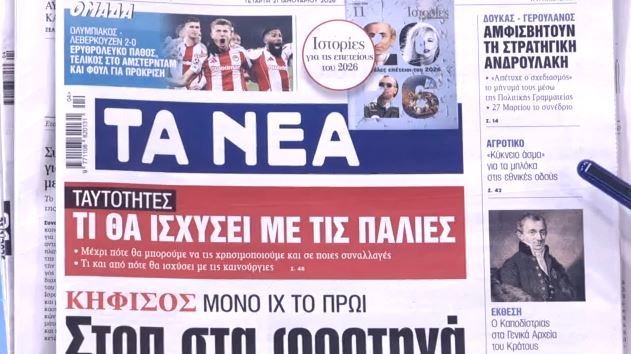 Αρχική ΚΟΙΝΩΝΙΑ Τα πρωτοσέλιδα των εφημερίδων σήμερα ΚΟΙΝΩΝΙΑ Τα πρωτοσέλιδα των εφημερίδων σήμερα Από admin - 21 Ιανουαρίου 2026 FacebookTwitterPinterestWhatsApp Τι γράφουν οι εφημερίδες σήμερα 21/01/2026. Πηγή ΠΑΡΟΜΟΙΑ ΑΡΘΡΑΠΕΡΙΣΣΟΤΕΡΑ ΑΠΟ ΤΟΝ ΔΗΜΙΟΥΡΓΟ Παρατείνεται το Amber Alert με εισαγγελική εντολή για την 16χρονη Λόρα Ιτέα: Συνελήφθη ανήλικος μαθητής για εμπρησμό & βανδαλισμό του σχολείου του Αποχωρούν σταδιακά μέχρι την Παρασκευή οι αγρότες από τα μπλόκα παρά τη δυσαρέσκειά τους Αγρίνιο: Σε βαρύ κλίμα το τελευταίο «αντίο» στον 50χρονο κοινοτάρχη – Τραγική φιγούρα ο 13χρονος γιος του Πώς μέλη συμμορίας «πείραζαν» τις αντλίες των πρατηρίων υγρών καυσίμων με ειδικό λογισμικό – 12 συλλήψεις Πάτρα: Παράταση του Amber Alert για την 16χρονη Λόρα – Συνεχίζονται οι έρευνες Ροή ειδήσεων ΠΑΣΟΚ: «Μία ωραία ατμόσφαιρα» στον δρόμο προς το συνέδριο – Όλοι... 21 Ιανουαρίου 2026 Παρατείνεται το Amber Alert με εισαγγελική εντολή για την 16χρονη Λόρα 21 Ιανουαρίου 2026 Ιτέα: Συνελήφθη ανήλικος μαθητής για εμπρησμό & βανδαλισμό του σχολείου του 21 Ιανουαρίου 2026 Στο Νταβός ο Μητσοτάκης για το Οικονομικό Φόρουμ: Ανησυχία της Αθήνας... 21 Ιανουαρίου 2026 Αποχωρούν σταδιακά μέχρι την Παρασκευή οι αγρότες από τα μπλόκα παρά... 21 Ιανουαρίου 2026 Νίκος Αναδιώτης για αμβλώσεις: Όσες γυναίκες γνωρίζω και έχουν κάνει, το... 21 Ιανουαρίου 2026 Φειδίας Παναγιώτου για Μαρία Καρυστιανού: Ίσως στο μέλλον της προτείνουμε να... 21 Ιανουαρίου 2026 Αγρότες: Σε εξέλιξη η συνάντηση Τσιάρα με εκπροσώπους μπλόκων από Βόρεια... 21 Ιανουαρίου 2026 Ελεονώρα Μελέτη κατά Μαρίας Καρυστιανού για τις αμβλώσεις: «Είναι ξεκάθαρα μια... 21 Ιανουαρίου 2026