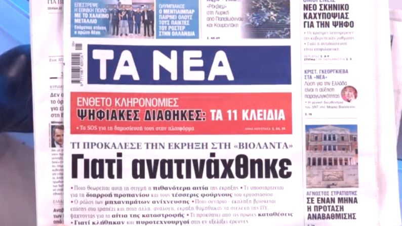 Αρχική ΚΟΙΝΩΝΙΑ Τα πρωτοσέλιδα των εφημερίδων σήμερα ΚΟΙΝΩΝΙΑ Τα πρωτοσέλιδα των εφημερίδων σήμερα Από admin - 27 Ιανουαρίου 2026 FacebookTwitterPinterestWhatsApp Τι γράφουν οι εφημερίδες σήμερα 27/01/2026. Πηγή ΠΑΡΟΜΟΙΑ ΑΡΘΡΑΠΕΡΙΣΣΟΤΕΡΑ ΑΠΟ ΤΟΝ ΔΗΜΙΟΥΡΓΟ Γλυφάδα: 15χρονος μαθητής πήγε στο σχολείο με τρία μαχαίρια και έναν κόφτη Πού στρέφονται οι έρευνες για την έκρηξη στο εργοστάσιο Βιολάντα – Εξετάζεται το σενάριο της διαρροής προπανίου Δραπετσώνα: Συνελήφθη ιδιοκτήτης πασίγνωστου σουβλατζίδικου για διακίνηση ναρκωτικών Τρίκαλα: Θρήνος για τις πέντε νεκρές εργαζόμενες μετά την έκρηξη στο εργοστάσιο «Βιολάντα» Έκρηξη στο εργοστάσιο «Βιολάντα»: Θρήνος για τις 5 νεκρές εργαζόμενες – Δούλευαν νύχτα για να μεγαλώσουν τα παιδιά τους «Βιολάντα»: Ντοκουμέντο από την στιγμή της έκρηξης στο εργοστάσιο – 5 νεκρές εργαζόμενες Ροή ειδήσεων Γλυφάδα: 15χρονος μαθητής πήγε στο σχολείο με τρία μαχαίρια και έναν... 27 Ιανουαρίου 2026 Ο Νίκος Ανδρουλάκης «τρίζει τα δόντια» σε όσους πυροδοτούν την εσωστρέφεια... 27 Ιανουαρίου 2026 Πού στρέφονται οι έρευνες για την έκρηξη στο εργοστάσιο Βιολάντα –... 27 Ιανουαρίου 2026 Το Μέγαρο Μαξίμου αναζητά 200 ψήφους ώστε οι αλλαγές για τους... 27 Ιανουαρίου 2026 Δραπετσώνα: Συνελήφθη ιδιοκτήτης πασίγνωστου σουβλατζίδικου για διακίνηση ναρκωτικών 27 Ιανουαρίου 2026 Τρίκαλα: Θρήνος για τις πέντε νεκρές εργαζόμενες μετά την έκρηξη στο... 27 Ιανουαρίου 2026 Γιώργος Καπουτζίδης: «Έμενα κλεισμένος στο σπίτι από επιλογή μου – Δεν... 27 Ιανουαρίου 2026 Άκτιο: Σπούδασε… αλλά η ευτυχία ήταν στα πρόβατα – Ο τελευταίος... 27 Ιανουαρίου 2026 Διαμανταίικα Αγρινίου: Ένα χωριό που θυμάται, ακόμη κι όταν όλα γύρω... 27 Ιανουαρίου 2026