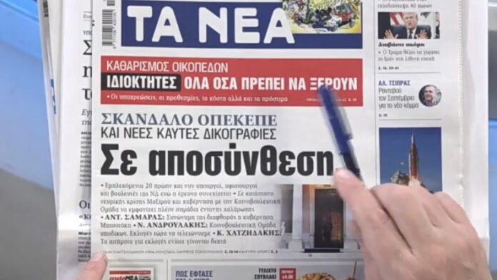 Αρχική ΚΟΙΝΩΝΙΑ Τα πρωτοσέλιδα των εφημερίδων σήμερα ΚΟΙΝΩΝΙΑ Τα πρωτοσέλιδα των εφημερίδων σήμερα Από admin - 3 Απριλίου 2026 FacebookTwitterPinterestWhatsApp Τι γράφουν οι εφημερίδες σήμερα 03/04/2026. Πηγή ΠΑΡΟΜΟΙΑ ΑΡΘΡΑΠΕΡΙΣΣΟΤΕΡΑ ΑΠΟ ΤΟΝ ΔΗΜΙΟΥΡΓΟ Βέροια: «Έχασε» τη μάχη ο 7χρονος Αχιλλέας – Είχε τραυματιστεί σοβαρά ενώ έπαιζε στο πάρκο Αμπελόκηποι: Αναζητείται ο ιδιοκτήτης του χώρου που στέγαζε μαντρί σε ταράτσα πολυκατοικίας Κιάτο: 40χρονη τραυματίστηκε σοβαρά στο κεφάλι – Πιάστηκαν τα μαλλιά της σε μηχάνημα εργοστασίου Θάνατος 59χρονης στον Εύοσμο: Νέος κύκλος καταθέσεων από πρόσωπα που την είδαν λίγο πριν δολοφονηθεί Φονικό το πέρασμα της κακοκαιρίας Erminio με έναν νεκρό και μεγάλες καταστροφές – Σκόνη και λασποβροχές στην Κρήτη Σάρωσε η κακοκαιρία «Erminio» τη χώρα – Προβλήματα & καταστροφές Ροή ειδήσεων Γιώργος Φλωρίδης: Η Ζωή Κωνσταντοπούλου έστειλε στο νοσοκομείο την πρόεδρο του... 3 Απριλίου 2026 Βέροια: «Έχασε» τη μάχη ο 7χρονος Αχιλλέας – Είχε τραυματιστεί σοβαρά... 3 Απριλίου 2026 Αμπελόκηποι: Αναζητείται ο ιδιοκτήτης του χώρου που στέγαζε μαντρί σε ταράτσα... 3 Απριλίου 2026 ΠΑΣΟΚ: Οι εκλογές, το αίτημα περί προανακριτικής για ΟΠΕΚΕΠΕ και επίθεση... 3 Απριλίου 2026 Κιάτο: 40χρονη τραυματίστηκε σοβαρά στο κεφάλι – Πιάστηκαν τα μαλλιά της... 3 Απριλίου 2026 ΟΠΕΚΕΠΕ: Στο «μάτι του κυκλώνα» Σπήλιος Λιβανός και Φωτεινή Αραμπατζή –... 3 Απριλίου 2026 Θάνατος 59χρονης στον Εύοσμο: Νέος κύκλος καταθέσεων από πρόσωπα που την... 3 Απριλίου 2026 ΟΠΕΚΕΠΕ: Στο «μάτι του κυκλώνα» Σπήλιος Λιβανός και Φωτεινή Αραμπατζή –... 3 Απριλίου 2026 Φονικό το πέρασμα της κακοκαιρίας Erminio με έναν νεκρό και μεγάλες... 3 Απριλίου 2026