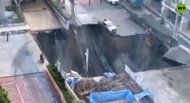 Συναγερμός στην Μπανγκόκ σημάνε το πρωί όταν κατέρρευσε τμήμα κεντρικού δρόμου μπροστά από νοσοκομείο δημιουργώντας μία μεγάλη τρύπα βάθους 50 μέτρων προκαλώντας προβλήματα στην κυκλοφορία, ζημιές σε υποδομές και εκκένωση της περιοχής. Υπήρχαν θύματα και που αποδίδουν οι Αρχές την καθίζηση αυτή που καταγράφηκε σε βίντεο.