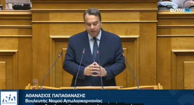 Στην Ολομέλεια της Βουλής μίλησε ο Βουλευτής Αιτωλοακαρνανίας της Νέας Δημοκρατίας, Θανάσης Παπαθανάσης, κατά τη συζήτηση για την κύρωση της σύμβασης δωρεάς της κυρίας Λάτση για την ανέγερση της νέας Μονάδας Ημερήσιας Νοσηλείας «Νίκος Κούρκουλος» στο Πανεπιστημιακό Νοσοκομείο Πατρών.