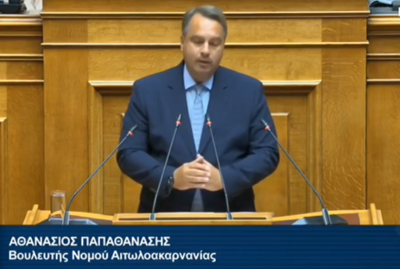 Την τοποθέτησή του στη Βουλή για το νέο νομοσχέδιο του Υπουργείου Κοινωνικής Συνοχής και Οικογένειας πραγματοποίησε ο Βουλευτής Αιτωλοακαρνανίας της Νέας Δημοκρατίας, Θανάσης Παπαθανάσης, υπογραμμίζοντας τον κοινωνικό του χαρακτήρα και τα στοχευμένα μέτρα για δύο κρίσιμες προκλήσεις: το δημογραφικό ζήτημα και τη στεγαστική κρίση.