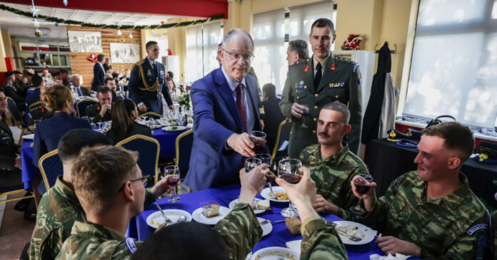 Μέρος στο παραδοσιακό γεύμα με τους Εύζωνες έλαβε σήμερα (12.12.2025) ο Πρόεδρος της Δημοκρατίας Κωνσταντίνος Τασούλας, με αφορμή τον εορτασμό της 157ης επετείου από την ίδρυση της Προεδρικής Φρουράς.