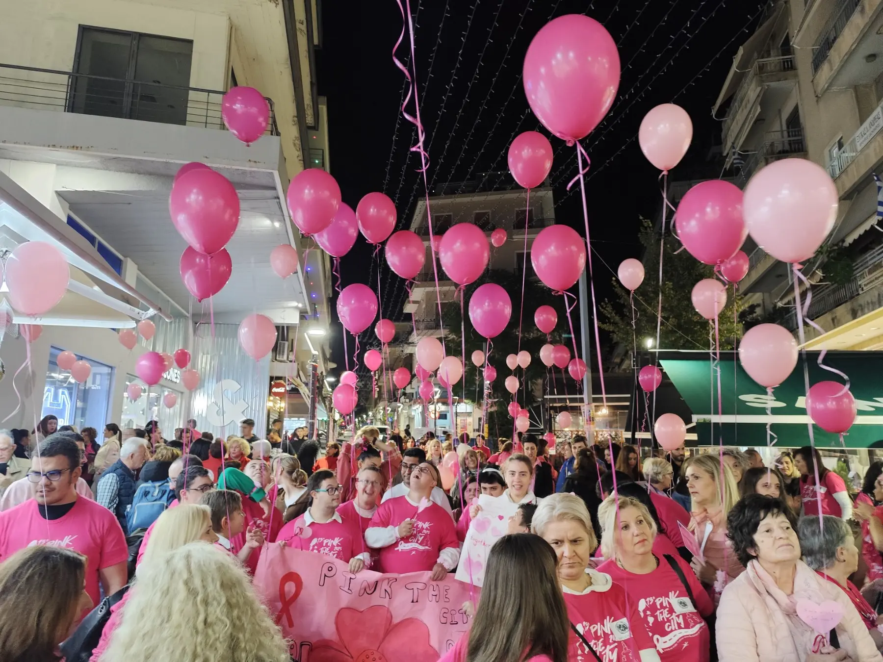 Οι συμμετέχοντες, φορώντας ροζ μπλουζάκια και κρατώντας συμβολικά ροζ μπαλόνια, περπάτησαν στους δρόμους της πόλης, σε μια διαδρομή αφιερωμένη στις γυναίκες που δίνουν ή έδωσαν τη μάχη με τον καρκίνο του μαστού. Η πόλη “φωτίστηκε” ροζ, υπενθυμίζοντας τη σημασία της πρόληψης, της έγκαιρης διάγνωσης και της στήριξης κάθε γυναίκας που αντιμετωπίζει την ασθένεια.