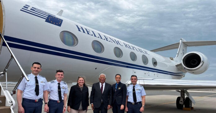 Ο Πορτογάλος πρόεδρος του Ευρωπαϊκού Συμβουλίου, Αντόνιο Κόστα μπροστά στο ελληνικό πρωθυπουργικό αεροσκάφος / πηγή φωτογραφίας Antonio Costa (X)