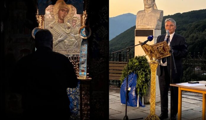 Η περιοδεία άρχισε από την Ιερά Μονή της Παναγίας της Προυσιώτισσας, ένα παγκόσμιο προσκύνημα που προσελκύει πλήθος πιστών, που συρρέουν για να προσκυνήσουν τη θαυματουργή εικόνα με τα τρία αστέρια, που είχε δωρίσει ο οπλαρχηγός της Επανάστασης του ’21, Γεώργιος Καραϊσκάκης. Ο ηγούμενος της Μονής Ιερομόναχος π. Ιωαννίκιος Βαρβαρέλης ξενάγησε τον Πρόεδρο στο νέο μουσείο της Μονής, όπου φυλάσσονται πολύτιμα κειμήλια.