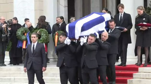 Η σορός της πριγκίπισσας Ειρήνης τυλιγμένη με την ελληνική σημαία εξέρχεται από την Μητρόπολη Αθηνών.