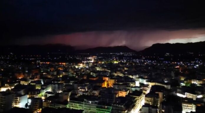 Την ίδια ώρα, στην Καρδίτσα, έπεσαν τόνοι νερού οι κεραυνοί έκαναν τη νύχτα, μέρα.