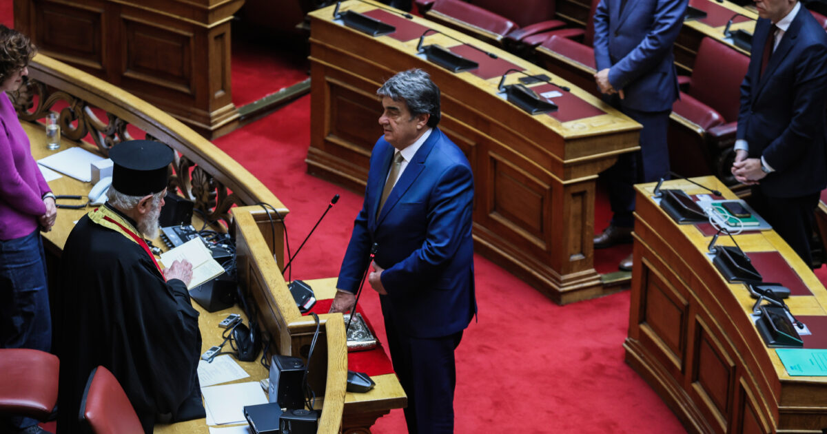 Στιγμιότυπο από την ορκωμοσία του βουλευτή του ΠΑΣΟΚ Βαγγέλη Γιαννακούρα (Πηγή φωτογραφίας: EUROKINISSI)