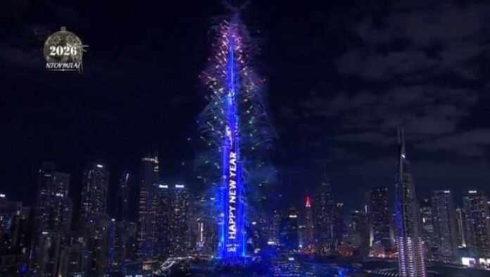 Το Ντουμπάι υποδέχεται το 2026 με ένα φαντασμαγορικό υπερθέαμα στο Burj Khalifa, το οποίο περιλάμβανε πυροτεχνήματα από 365 σημεία του ψηλότερου κτιρίου του κόσμου, εντυπωσιακά σόου με λέιζερ και LED προβολές.